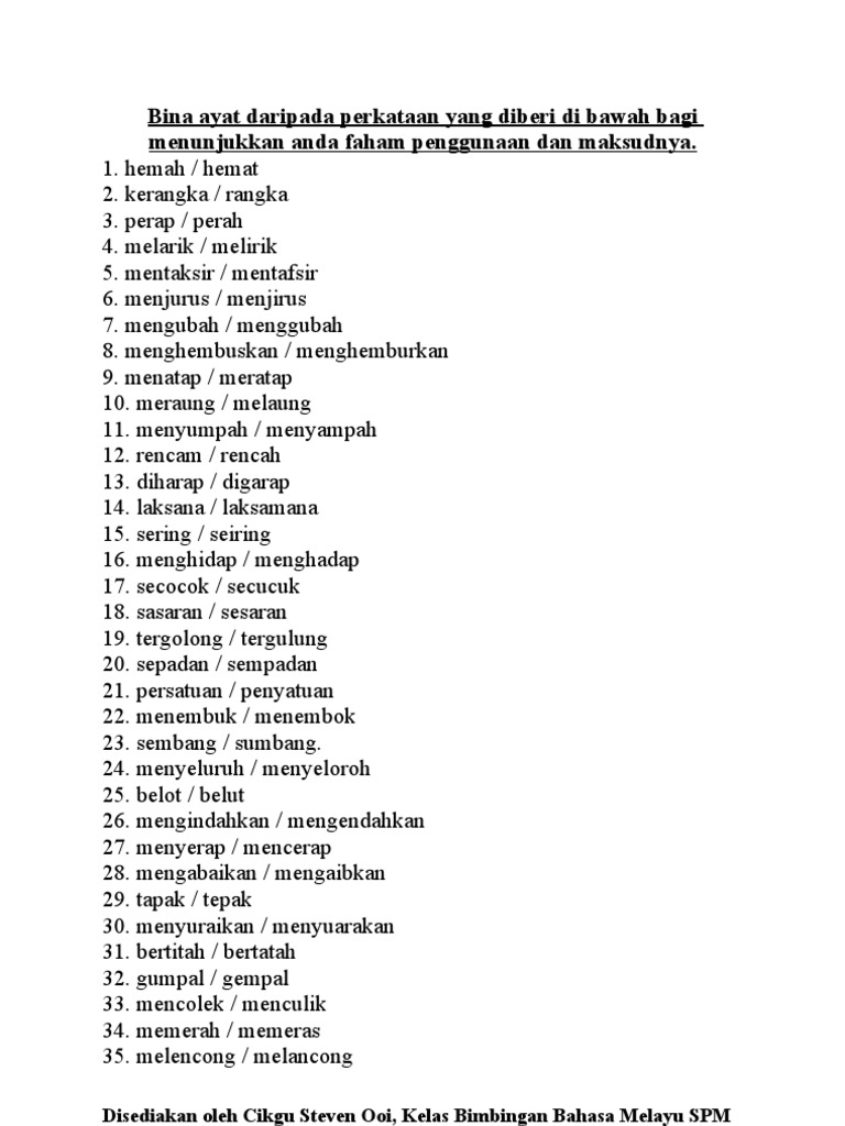 Laman Bahasa Melayu Spm Cadangan Soalan 3 A Membina Ayat Menggunakan Perkataan Diberi Peperiksaan Percubaan Spm Mrsm