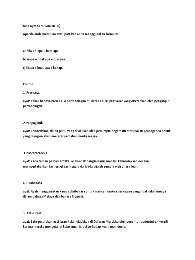 Contoh Bina Ayat Spm